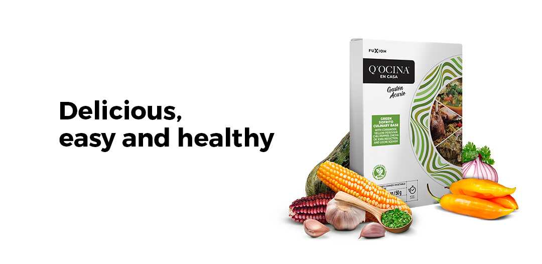 Sofrito culinary bases made with all-natural Peruvian-grown fresh vegetables, using professional techniques commonly found in fine dining restaurants (cooking, sauteing, caramelization, etc.). These preparations can then be used to make a wide variety of delicious dishes. Sofrito culinary bases developed by Gastón Acurio using Fuxion technology to make them healthier—free of preservatives and artificial colors or flavors.